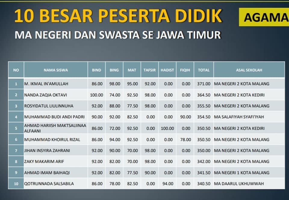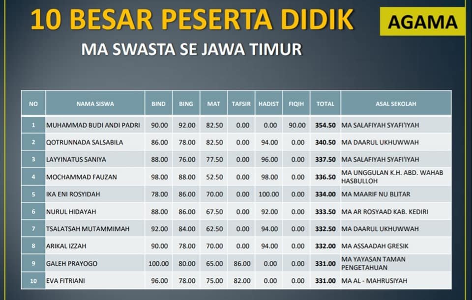 Hasil UNBK MA kali ini ( Tapel 2019 – 2020) sungguh di luar dugaan…. bahkan tidak ada bayangan berita gembira ini akan datang … Karena sejatinya masih banyak kekurangan, ditengah kekurangan itulah Allah memberikan Motivasi Hebat untuk berkarya lebih besar… karena bisa jadi ini hadiah dari Allah, salah satunya karena ppdu berusaha konsinten menghidupkan Al – Qur’an tentu dengan bahasa arabnya.